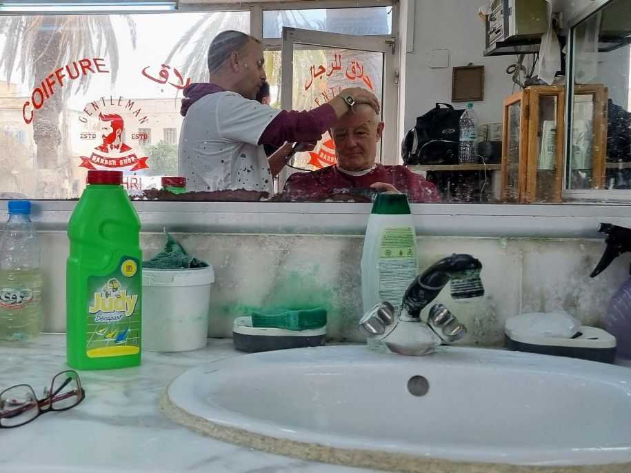 Cartago reisuun jälkeen jäin yksin Tunisiin. Eräänä aamuna lähdin vain kävelemään ja kokemaan mitä eteen tulee. Tapoihin kuuluu käydä paikallisessa parturissa ja niin tälläkin kertaa. Nyt oli kyllä vaikea selittää mitä halusin mutta olin tyytyväinen lopputulokseen. Tukka lähti ja parta ajettiin ja mies haisi kolinalle käsittelyn jälkeen. Parturi maksoi €5,00.
