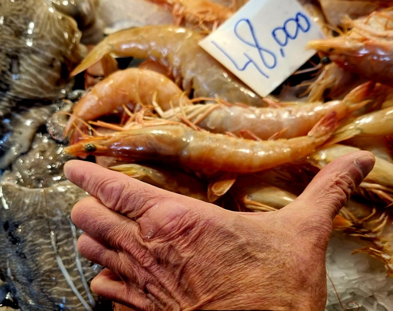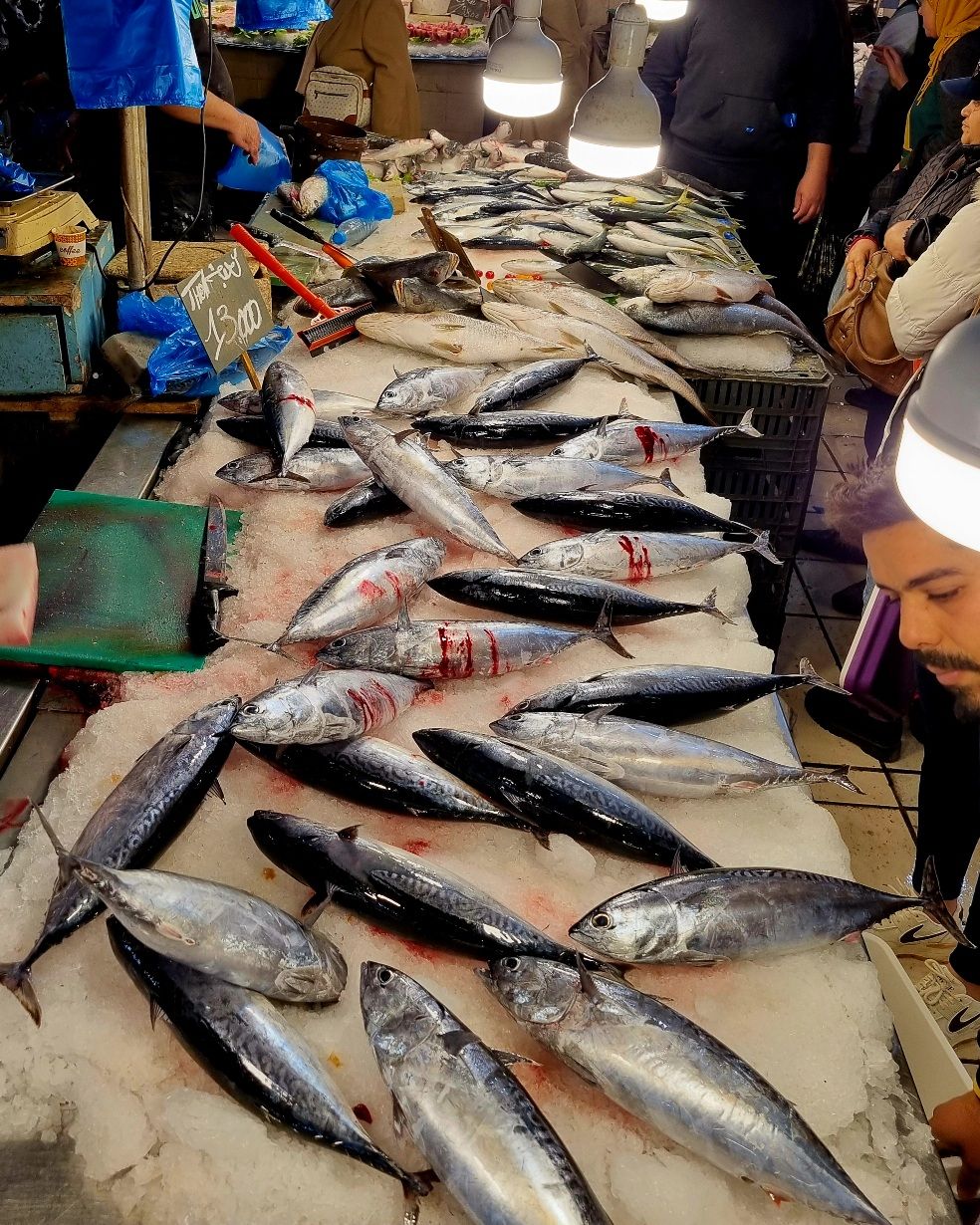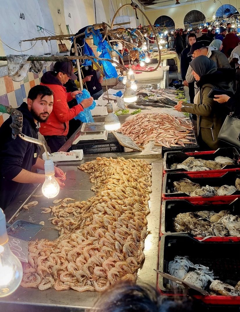 Hajun perusteella löysin myös kalatorin. Täällä huomioni kiinnittyi katkarauihin, jotka oli minusta todella suuria. Tykkään käydä kalatoreilla katsomassa minkälaisia kaloja meressä elää.